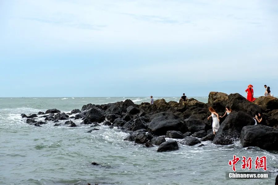 游客在儋州峨蔓火山海岸龍門(mén)激浪景觀點(diǎn)游玩。凌楠 攝