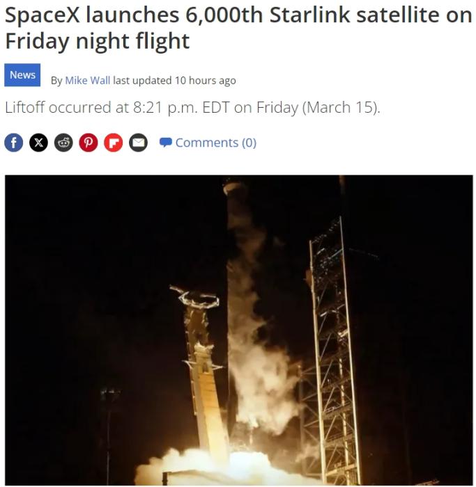 報道稱,自2019年第一顆“星鏈”衛(wèi)星發(fā)射升空后,此次發(fā)射將部署在太空的“星鏈”衛(wèi)星總數(shù)量增加到6000多顆。