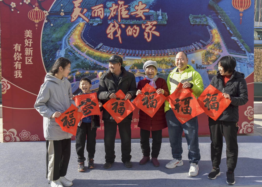 “藝術(shù)家給我們寫春聯(lián),以前可沒有過。一幅幅春聯(lián)為我們回遷安置片區(qū)居民送福添喜?!睆乃囆g(shù)家手里接過大紅對聯(lián),雄安新區(qū)容東片區(qū)居民郝麗特別開心。