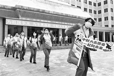 昨日,中財(cái)大冬奧志愿者集結(jié),奔赴首都機(jī)場開展志愿服務(wù) 攝影/本報(bào)記者 郭謙