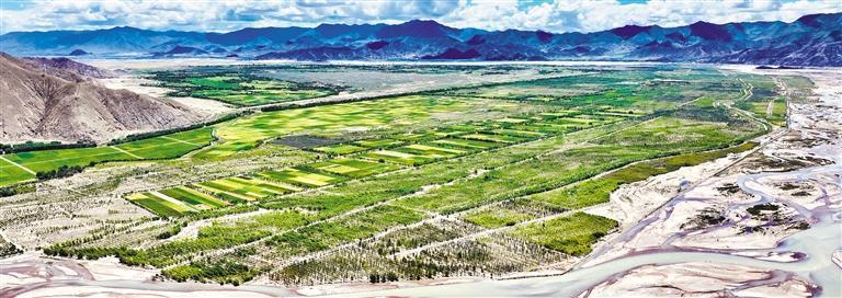 8月23日,日喀則市南木林縣“雅江北岸生態(tài)示范區(qū)”3.6萬畝生態(tài)防護(hù)林郁郁蔥蔥。經(jīng)濟(jì)日報(bào)記者 袁勇 攝