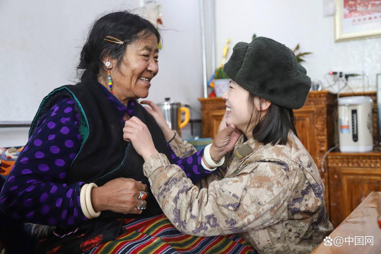 2024年3月1日,新疆軍區(qū)某工兵團(tuán)官兵們走進(jìn)阿里日土縣的敬老院,開展學(xué)雷鋒志愿服務(wù)活動(dòng)。女兵王文靜與藏族阿媽溫馨互動(dòng)的畫面,成為當(dāng)天最暖心的一幕?!D片來源:中國(guó)網(wǎng)