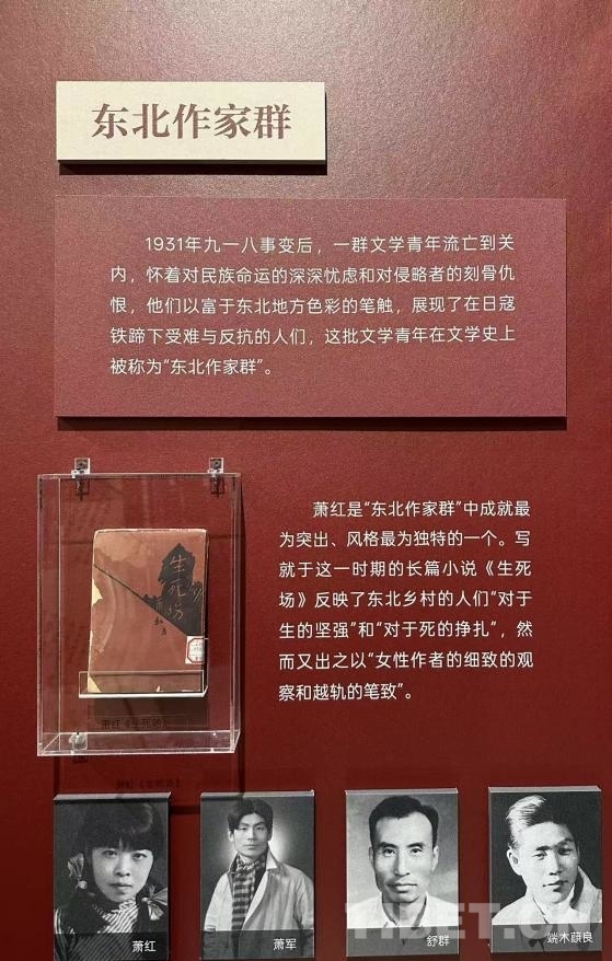 圖為中國現(xiàn)代文學(xué)館內(nèi),“山河跡憶——手稿里的抗戰(zhàn)中國”展覽中蕭紅等作家的相關(guān)介紹