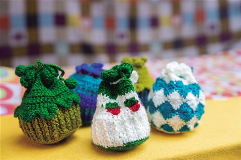 阿佳們親手鉤織的毛線茶杯套、毛線桌墊,既實用又色彩鮮明,墻上掛滿的手工編織牛毛包讓人“糾結(jié)癥”都犯了!和這座商城的建筑一樣,這里出售的美物將藏式美學展現(xiàn)得淋漓盡致。此外,這里還能淘到毛氈玩偶、毛氈風鈴、毛茸茸的藏戲面具掛件等一些能給生活增添樂趣的“小廢物”。