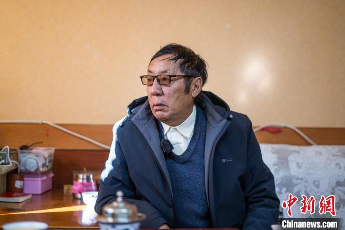 圖為12月3日,支布老人在家中向中新網(wǎng)記者講述“兩路”為西藏帶來的變化。貢嘎來松 攝