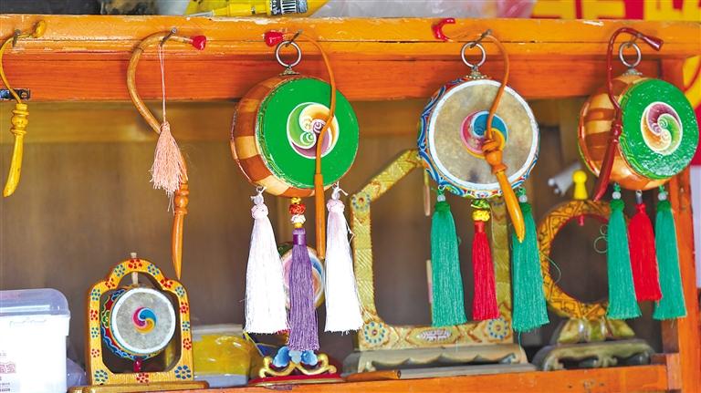 貢覺頓珠制作的各種鼓。
