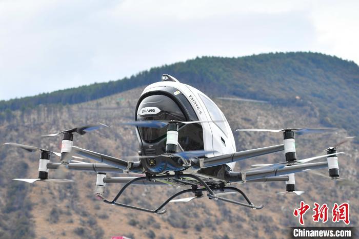 4月5日,西藏林芝第二十二屆桃花旅游文化節(jié)上,億航智能桃花載人無人機(jī)E-VTOL首次亮相海拔3000米高度,并成功首飛。首飛現(xiàn)場,無人機(jī)緩緩升空,引得市民、游客紛紛駐足仰望,降落之后,大家圍攏過來,近距離參觀體驗(yàn)并拍照留念。據(jù)悉,億航智能已在國內(nèi)合肥、杭州等地開展低空文旅項(xiàng)目,在全球19個國家,完成65000架次安全飛行。圖為載人無人機(jī)E-VTOL準(zhǔn)備進(jìn)行首次飛行。貢確 攝