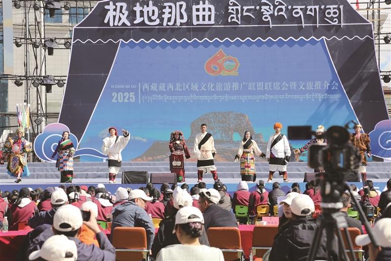 舞蹈《古韻》《非遺服飾秀》、歌曲《年輕的城市》《請到那曲走一走》等精彩節(jié)目輪番上演,一次次將聯(lián)席會的氣氛推向高潮。聯(lián)席會上,那曲、昌都、阿里三地文旅局代表共同簽署了《藏西北區(qū)域文旅推廣聯(lián)盟合作框架協(xié)議》,明確將在共塑品牌形象與聯(lián)合宣傳推廣、共推精品線路與產(chǎn)品創(chuàng)新、共建客源市場與互送機制、共享信息資源與交流學(xué)習(xí)等多個領(lǐng)域深化合作,這標志著藏西北旅游聯(lián)盟合作正式開啟了嶄新的篇章。