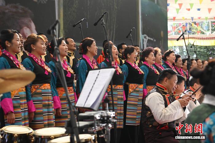 圖為群眾音樂會獨(dú)唱《祝福祖國》。中新社記者 貢嘎來松 攝