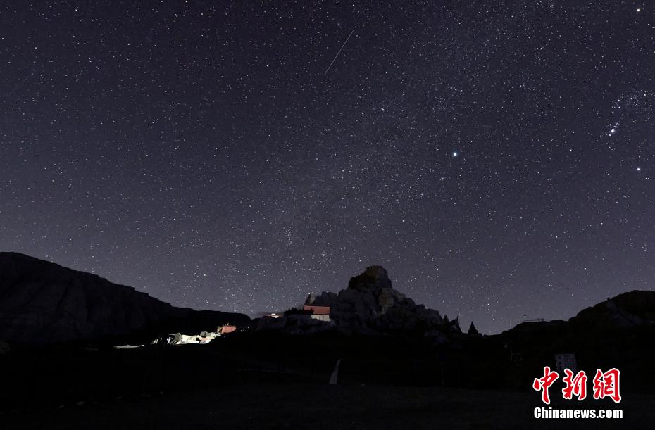 夜晚,西藏阿里地區(qū)古格王國(guó)遺址上空流星劃過。