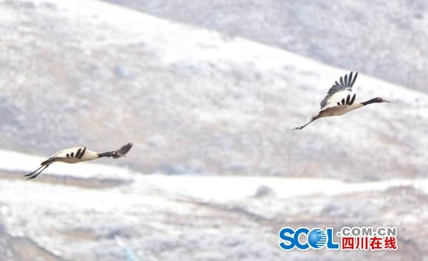 3月16日,在四川省阿壩州紅原縣安曲鎮(zhèn)的草原濕地,到處是雪茫茫的一片,從云南、貴州等地越冬歸來的一群黑頸鶴在此嬉戲覓食。它們時(shí)而逐嬉鬧,時(shí)而展翅飛翔,與周邊的牦牛、赤麻鴨相映成趣,給沉寂的高原帶來無限生機(jī)和活力。