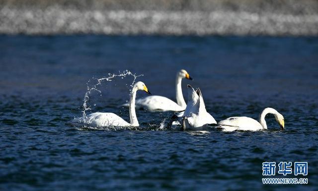 隨著氣溫回暖,位于青海省海南藏族自治州貴德縣境內(nèi)的黃河成為大天鵝的越冬“港灣”,它們在此覓食、休憩,為冬日的黃河帶來勃勃生機(jī)。