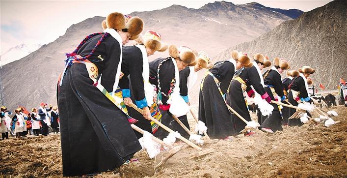 堆龍德慶區(qū)馬鎮(zhèn)馬村一年一度的春耕春播儀式現(xiàn)場(chǎng)。