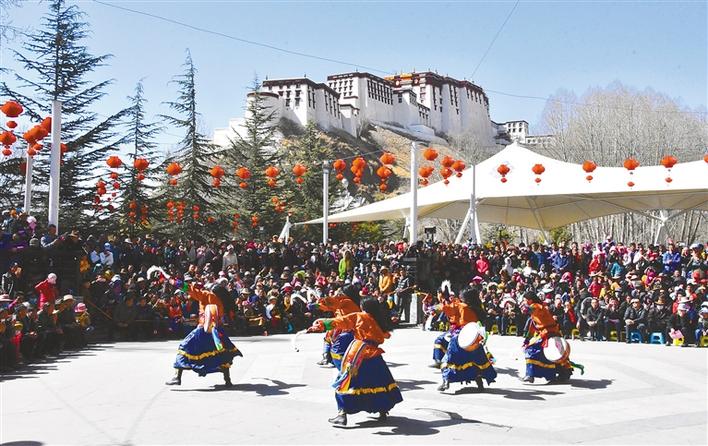 宗角祿康公園內(nèi)表演的非遺熱巴舞。