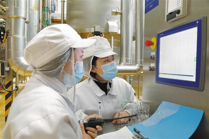 圖為技術(shù)人員對原奶進(jìn)行巴氏殺菌。 記者 鹿麗娟 攝