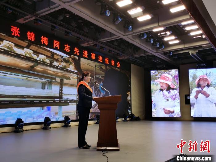 圖為張錦梅作報(bào)告。 張?zhí)砀?攝