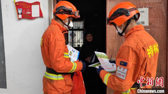 圖為森林消防員為駐地民眾科普防火知識(shí)。 林芝市森林消防供圖
