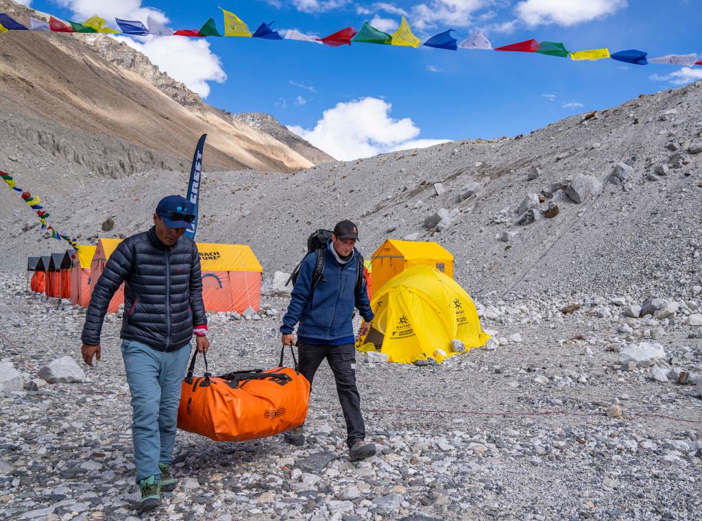 哈康·埃蘭森(右)正在搬運(yùn)自己的登山物資(5月24日攝)。新華社記者 孫非 攝