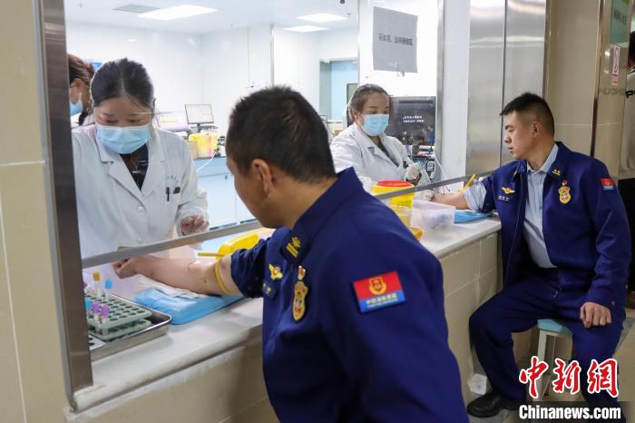 圖為4月23日,西藏左貢森林消防員到醫(yī)院獻血。姚天銳 攝