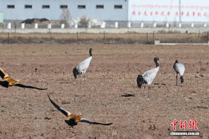 1月19日,西藏拉薩市林周縣黑頸鶴自然保護區(qū)內(nèi),成群候鳥在此越冬棲息。這里的濕地、農(nóng)田與水庫構(gòu)成絕佳棲息地,黑頸鶴、斑頭雁、赤麻鴨等萬余只候鳥在此集結(jié)。它們或凌空盤旋、或田間覓食,繪就高原生態(tài)畫卷。中新社記者 貢嘎來松 攝