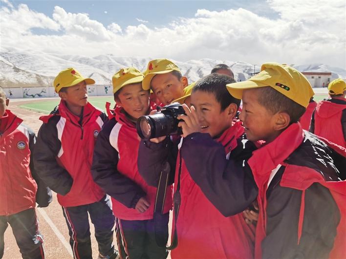 美術(shù)教室布置之初,從一年級(jí)到六年級(jí),二三十名學(xué)生追到新教室,拿著彩筆在墻上畫出一幅幅稚嫩卻充滿童趣的圖畫。“我想畫一個(gè)城堡,給它圖上美麗的顏色!”“我要把牦牛畫在墻上?!薄拔乙媯€(gè)飛行員”……