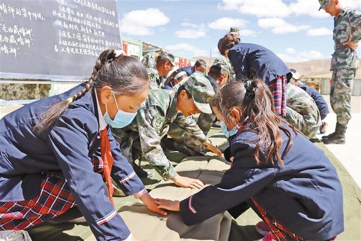 近日,西藏軍區(qū)某合成旅組織開展“軍營開放日”主題活動,邀請駐地小學(xué)生參觀軍營。開放日當天,官兵們分小組帶領(lǐng)同學(xué)們參觀榮譽室,體驗整理內(nèi)務(wù)等,并為同學(xué)們上了一堂精彩的國防教育課,進一步增強同學(xué)們的國防意識。