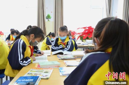 圖為化隆縣第一小學(xué)的學(xué)生們在閱覽室讀書。 魯?shù)り?攝