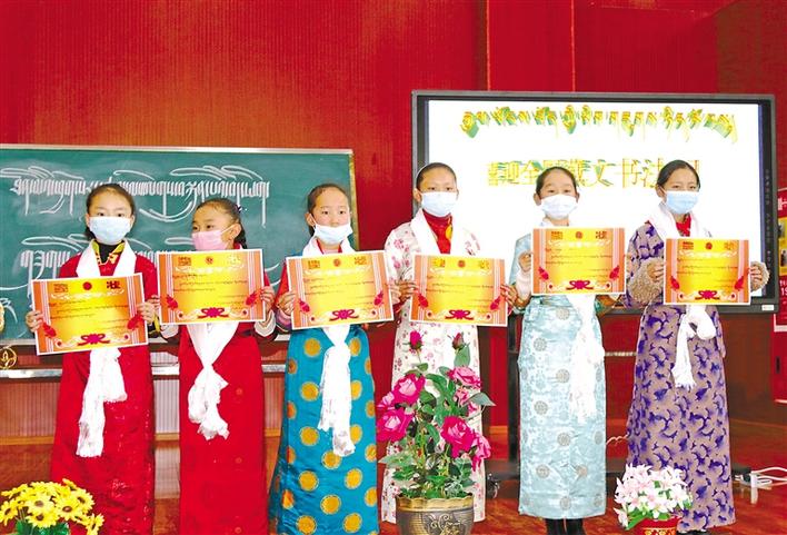 西藏山南市組織學(xué)生開(kāi)展藏文書法比賽