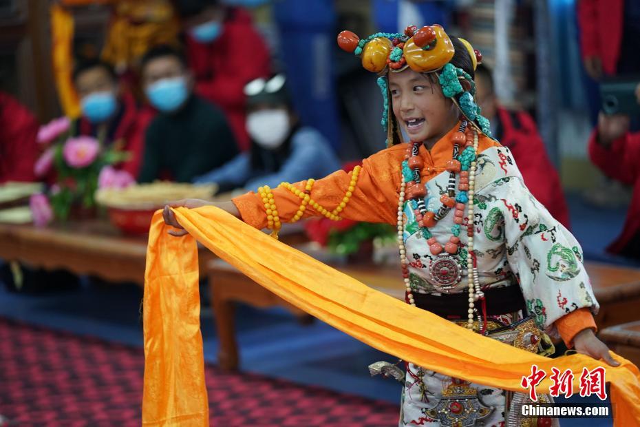 格薩爾史詩(shī)是聯(lián)合國(guó)教科文組織非物質(zhì)文化遺產(chǎn)。青海省雜多縣第二民族完全小學(xué)自2016年起組建格薩爾文化傳承班,這其中包括環(huán)保班級(jí)、格薩爾書(shū)法班級(jí)、哈達(dá)說(shuō)班級(jí)等九種類型。圖為10月14日,該校小學(xué)生表演格薩爾史詩(shī)說(shuō)唱藝術(shù)。中新社記者 蘇丹 攝