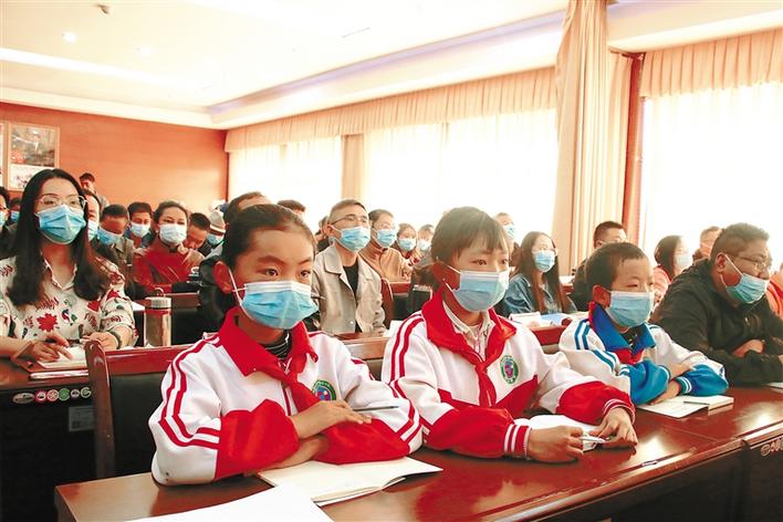 圖為瓊結(jié)縣黨員干部群眾和中小學(xué)生在聆聽中央第七次西藏工作座談會精神宣講。段敏 攝
