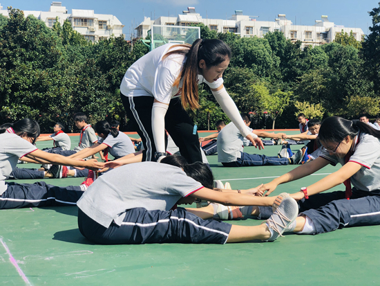 南京十三中紅山分校的體育老師在指導學生進行體育活動。南京十三中紅山分校供圖