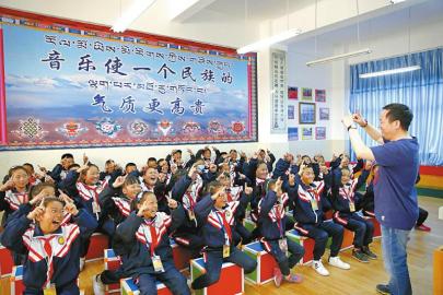 甘孜州巴塘縣正在上音樂課的孩子們。 劉磊攝