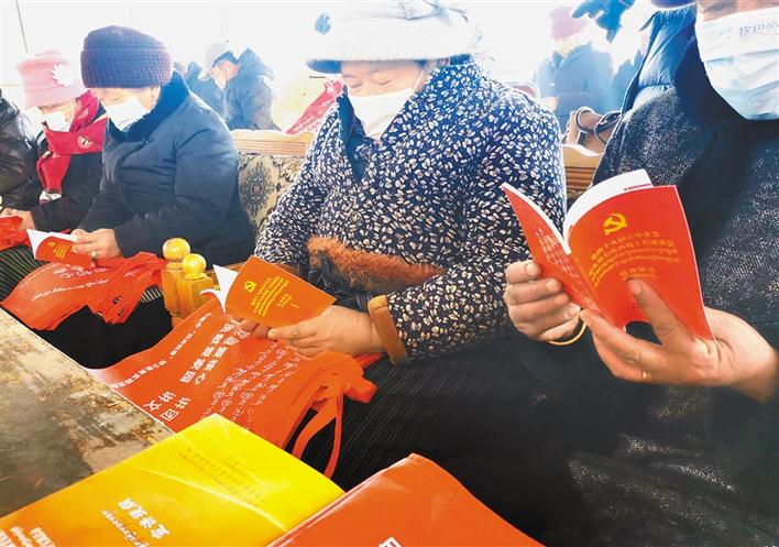 圖為社區(qū)群眾在閱讀黨的十九屆五中全會和中央第七次西藏工作座談會精神宣傳資料。段敏 攝