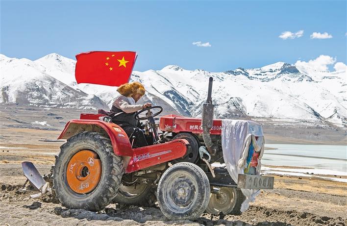 4月30日,拖拉機(jī)在西藏那曲市尼瑪縣當(dāng)穹錯旁舉行的春耕典禮上行進(jìn)。新華社記者 侯捷 攝