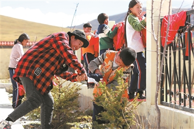 “林瑤可是我們學(xué)校的寶貝,既是開心果,又是救火隊(duì)員。開學(xué)時(shí),六年級(jí)缺數(shù)學(xué)教師,我就讓她頂上去了。現(xiàn)在,除藏語文外,林瑤什么課都教過,每周要上近30節(jié)課。我們這里海拔4300米,高寒缺氧,但她不缺精神!”說起林瑤,吉尼賽第二寄宿學(xué)校校長索南鬧吾不由得豎起了大拇指。