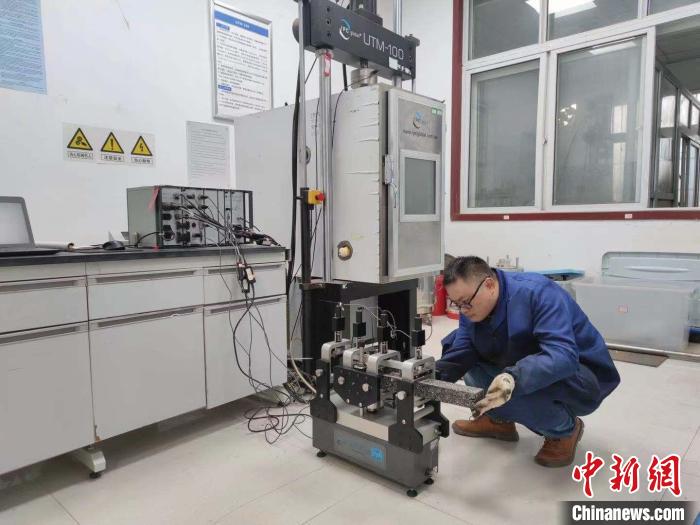 黃恒偉與團隊為莫喀高鐵項目進行凍融劈裂試驗?!∈茉L者供圖