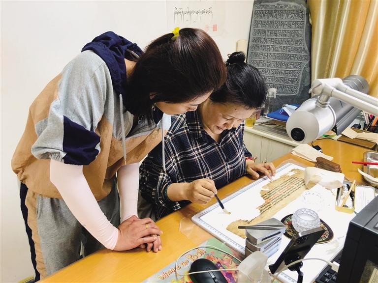 2015年自治區(qū)古籍修復(fù)中心成立以來,在國家圖書館和云南省圖書館等專業(yè)修復(fù)中心接受培訓(xùn)實踐的修復(fù)人員積極投入到藏文古籍修復(fù)工作中,相繼完成了拉薩市墨竹工卡縣芒熱寺破損古籍的修復(fù)任務(wù),修復(fù)古籍文獻(xiàn)共248葉,拍攝建檔496幅圖片,并把這部分完成修復(fù)的古籍文獻(xiàn)同目錄按正規(guī)程序移交給寺廟。完成了對山南市隆子縣加玉鄉(xiāng)強慶村白嘎寺的237函、3萬多葉的珍貴古籍文獻(xiàn)的整理、建檔和拍攝書影等工作。同時啟動了7000多葉破損古籍的修復(fù)工作,截至目前已完成4420葉破損古籍的修復(fù),為進一步做好傳統(tǒng)古籍文獻(xiàn)的再利用和原生性保護給予了有力保障。