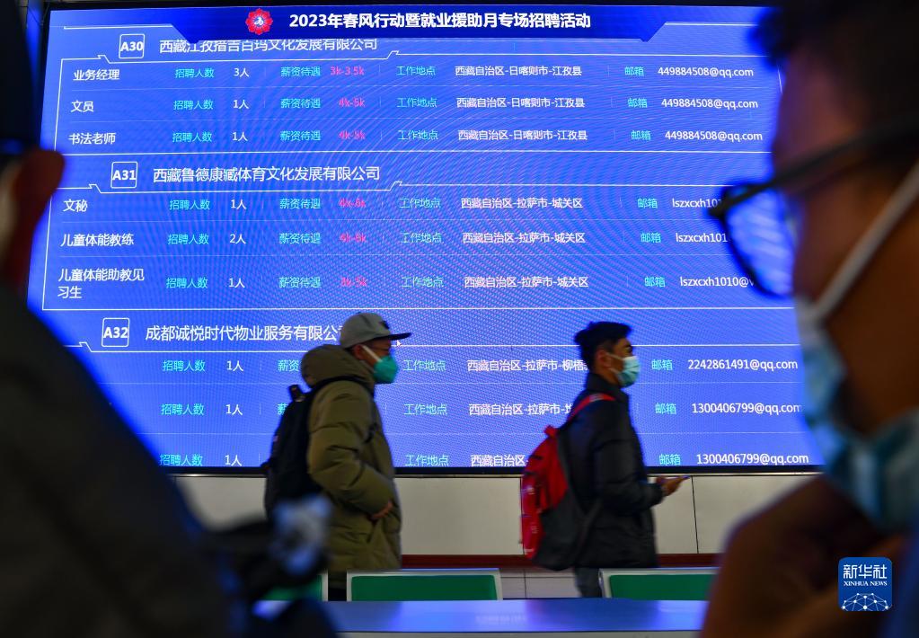 這是2月8日拍攝的西藏2023年“春風(fēng)行動(dòng)”暨就業(yè)援助月招聘活動(dòng)現(xiàn)場。新華社記者 晉美多吉 攝
