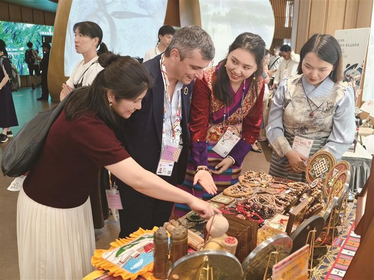 “文化沒(méi)有國(guó)界,好的作品能跨越語(yǔ)言障礙。”副校長(zhǎng)陳炳炎至今記得大阪世博會(huì)期間的暖心場(chǎng)景:一位日本老太太在藏式合香展臺(tái)前停留許久,反復(fù)聞嗅柏木與雪蓮花混合的香氣,最后用手勢(shì)比劃著購(gòu)買了10份香品?!八钢闫可系陌思閳D案,又指著自己胸前的文玩念珠,那一刻我突然明白,文化的共鳴如此奇妙。”據(jù)統(tǒng)計(jì),該校展區(qū)在展會(huì)期間累計(jì)接待各國(guó)觀眾超萬(wàn)人次,《藏式吉祥八寶》《布達(dá)拉宮》等作品被多家國(guó)際機(jī)構(gòu)收藏。