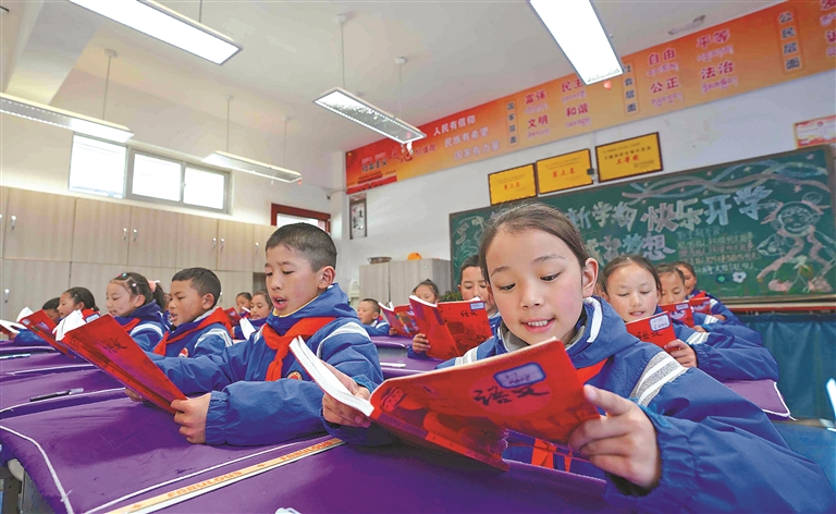 墨竹工卡縣南京實(shí)驗(yàn)小學(xué)的學(xué)生在認(rèn)真朗誦課文。記者 格桑倫珠 攝