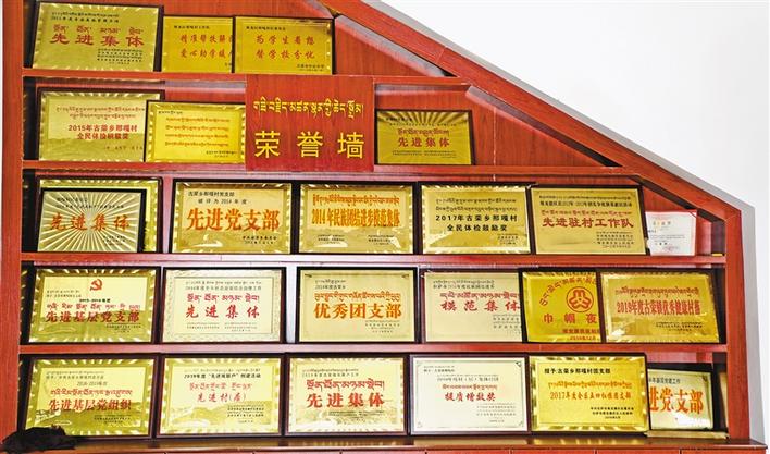 那嘎村脫貧戶扎西多吉家的獎狀墻。