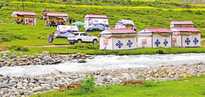 一旁的村黨委第一書記索朗多吉告訴記者,下一步,那嘎村將扎實做好扶貧后續(xù)工作,堅決杜絕返貧現(xiàn)象。從“輸血”式幫扶變成“造血”式幫扶,讓村民除了拿到分紅外,自己也有單獨的收入?!昂罄m(xù)我們會大力開展楚布溝特色旅游項目,如現(xiàn)有的楚布溝印象黑帳篷。打造一個集人氣餐飲、文藝展演、文化創(chuàng)意、民風民俗體驗于一體的‘一站式’生活空間?!彼骼识嗉f道。
