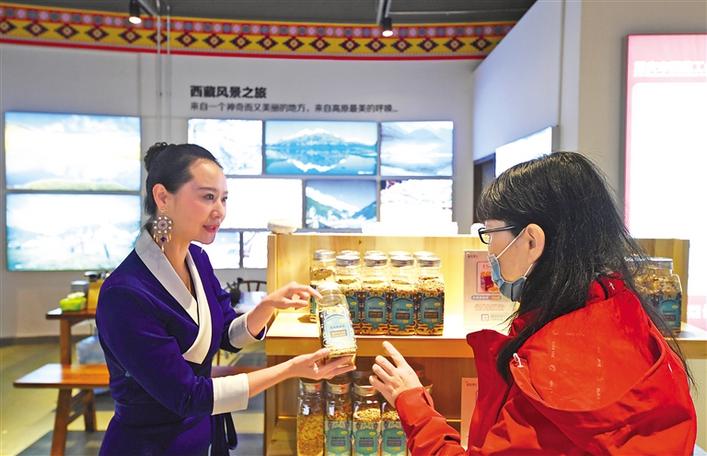 開(kāi)館當(dāng)日,展銷(xiāo)人員身著盛裝詳細(xì)介紹了來(lái)自雪域高原的類(lèi)烏齊牦牛肉干、卡若香豬臘肉、水磨糌粑、那曲蟲(chóng)草、索多西辣椒醬、達(dá)美擁葡萄酒、察雅蘋(píng)果醋等300余種西藏特色農(nóng)特產(chǎn)品和易貢藏刀、丁青象牙玉器、墨脫石鍋、左貢木碗、藏毯、藏靴、藏香等近100種民族手工藝品,琳瑯滿目的民族特色產(chǎn)品吸引了不少市民駐足選購(gòu)。