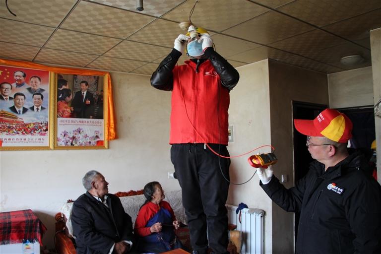圖為國網(wǎng)那曲供電公司工作人員在色尼區(qū)特困人員集中供養(yǎng)服務(wù)中心維修電路。記者 萬靖 攝