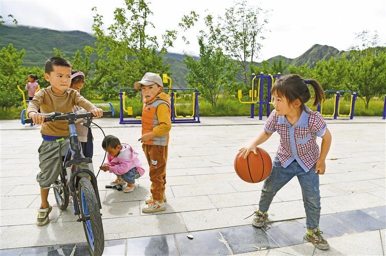圖為山南市加查縣冷達(dá)鄉(xiāng)共康村的孩子們在干凈整潔的廣場上玩耍。 記者 李洲 攝