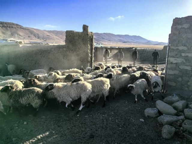 太陽翻過雪山,灑滿西藏日喀則市崗巴縣崗巴鎮(zhèn)雪村的大地時(shí),穿著羊皮袍子、皮膚黝黑的扎西多杰準(zhǔn)時(shí)打開了圈門。隨著此起彼伏的“咩咩咩”聲,羊群就像開閘的洪水般傾瀉而出,踏出滾滾塵煙。