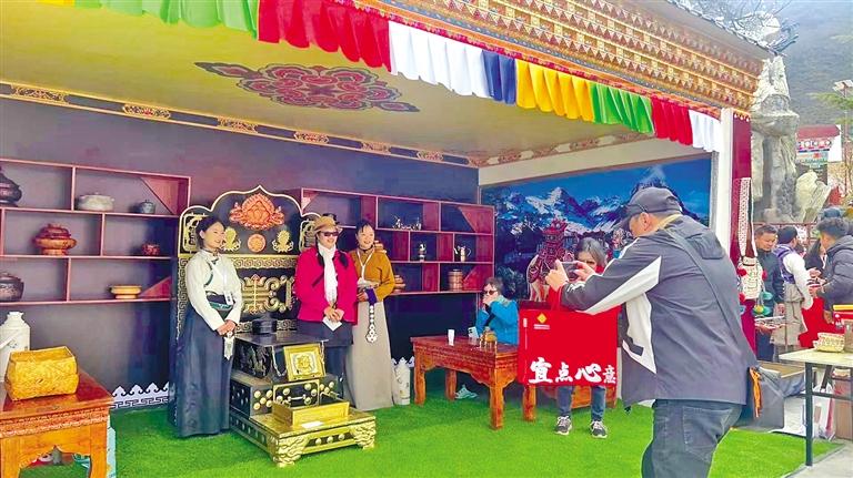 活動現(xiàn)場,工作人員通過組織游客參與拍照、打卡、集章等方式,依次通過“桃花圣地拍照打卡區(qū)”“次仁的家藏式體驗館”和“供銷小店展銷圣地”,集齊3枚印章后參與抽獎活動和美食品鑒。