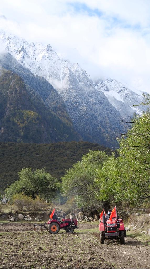 每年10月,是西藏那曲市嘉黎縣尼屋鄉(xiāng)播種冬小麥的時(shí)節(jié)。忠玉村村民索朗益西和鄉(xiāng)親們開(kāi)著拖拉機(jī)翻土備耕。
