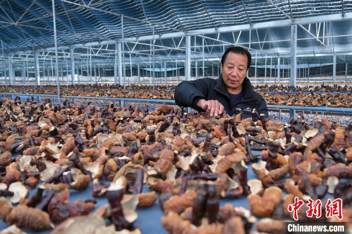 12月10日,西藏林芝米林市米林鎮(zhèn)紅太陽科技示范家庭農(nóng)場負(fù)責(zé)人尼瑪查看靈芝風(fēng)干情況。中新社記者 江飛波 攝