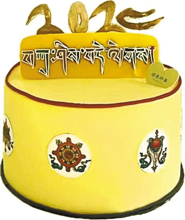 與搪瓷盆蛋糕的復(fù)古風(fēng)情不同,藏式蛋糕更多地融入了藏式傳統(tǒng)元素和制作工藝。藏式蛋糕往往使用青稞、酥油、牦牛奶、牦牛酸奶、糌粑等傳統(tǒng)的藏式原料和手法進(jìn)行制作,口感濃郁而特別,形態(tài)多參考藏式傳統(tǒng)圖案。相較于常見(jiàn)的西式蛋糕,藏式蛋糕更能夠凸顯出西藏特有的飲食文化和生活習(xí)俗。